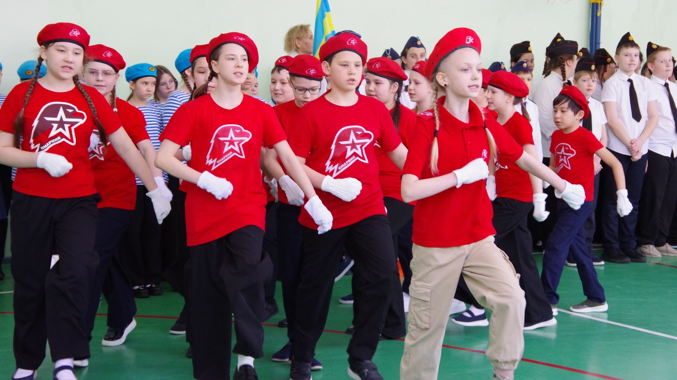 Честь школы защищали четверо юнармейцев: Александр Полевщиков, Алихан Жабаев, Арина Султанахмедова, все из 4в класса и Арсений Калеников, 4ж класс.
